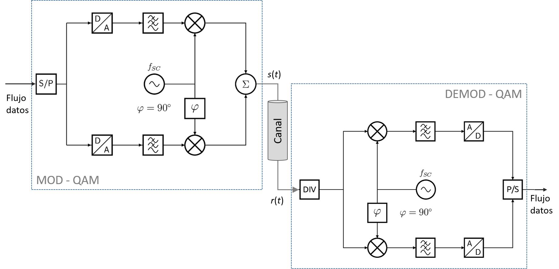 Esquema de modulación y demodulación QAM digital