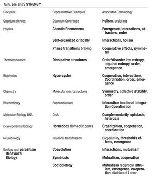 And finally: “Synergy is real. Its effects are measurable and quantifiable: e.g. economies of scale , increased efficiency , reduced costs , higher yields , lower mortality rates , a larger number of viable offsprings, etc… More subtle measuring rods include enhanced stability properties, greater stress tolerance , increased fidelity in reproduction , the melding of funcional complementarities to achieve new properties, and so forth” (Ibid, p.12).
