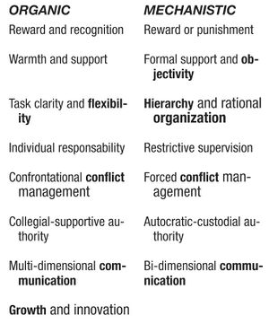 P.L. BEUKEMA proposed the following comparative taxonomy of organic and mechanistic values (1974, p.255, hereafter reproduced in a shortened form):