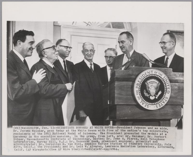 Picture of Norbert Wiener at the National Medal of Science Ceremony in 1963. Source: https: https://omeka-mitlibraries.s3.amazonaws.com/original/5fc9bd7e5cb6fab9e0edad83f22751cc4e0e4562.jpeg